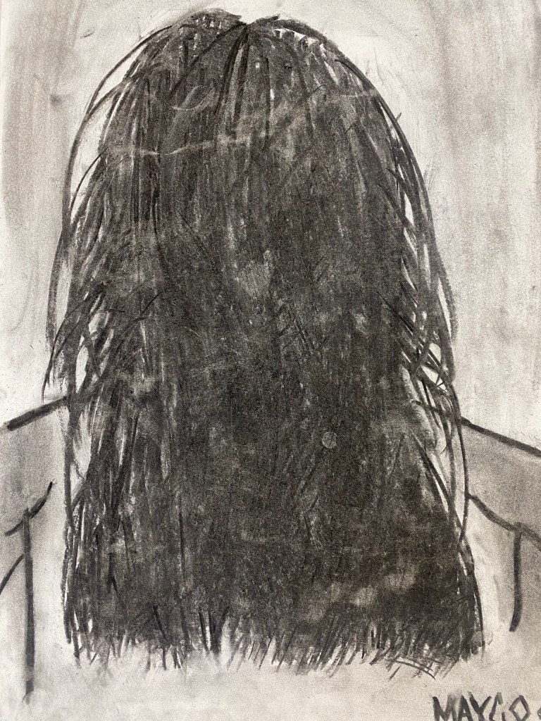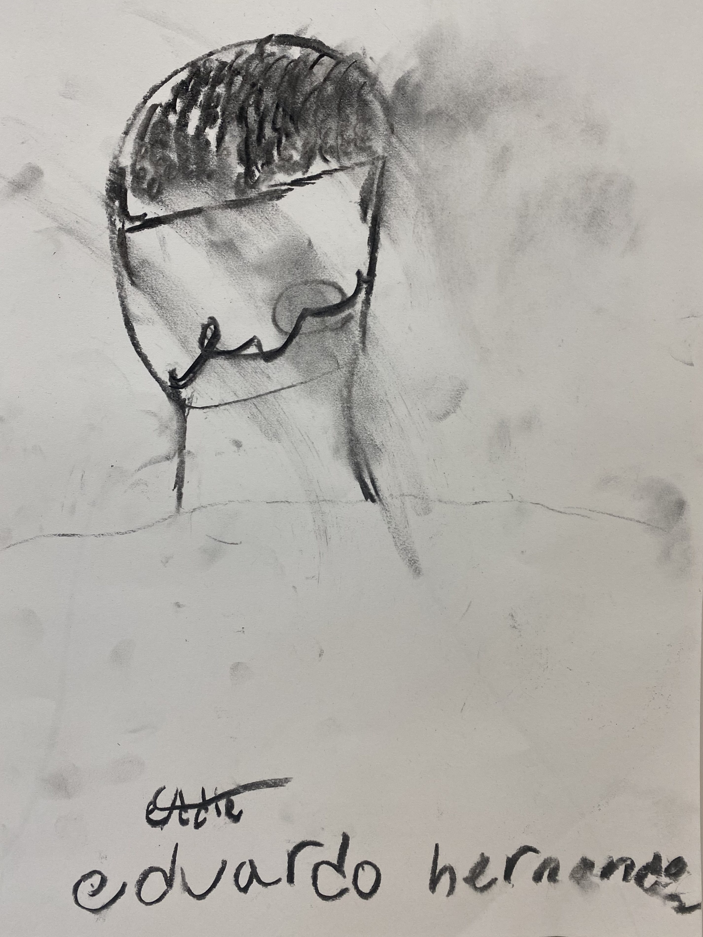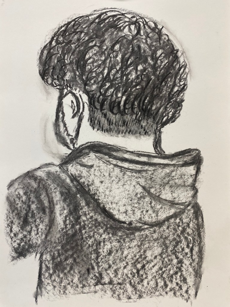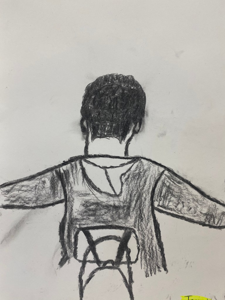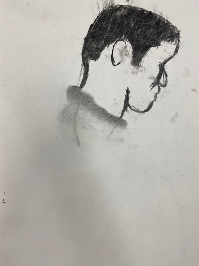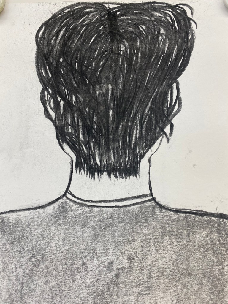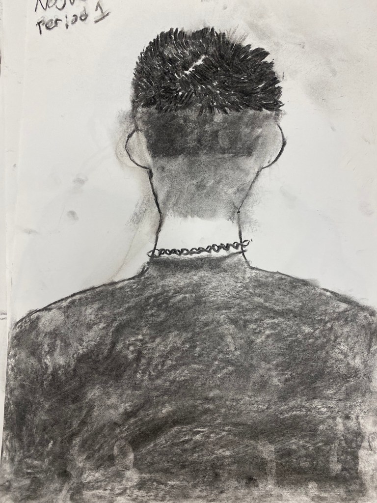 Charcoal and graphite portraits by Belmont HS students, 18 x 12″