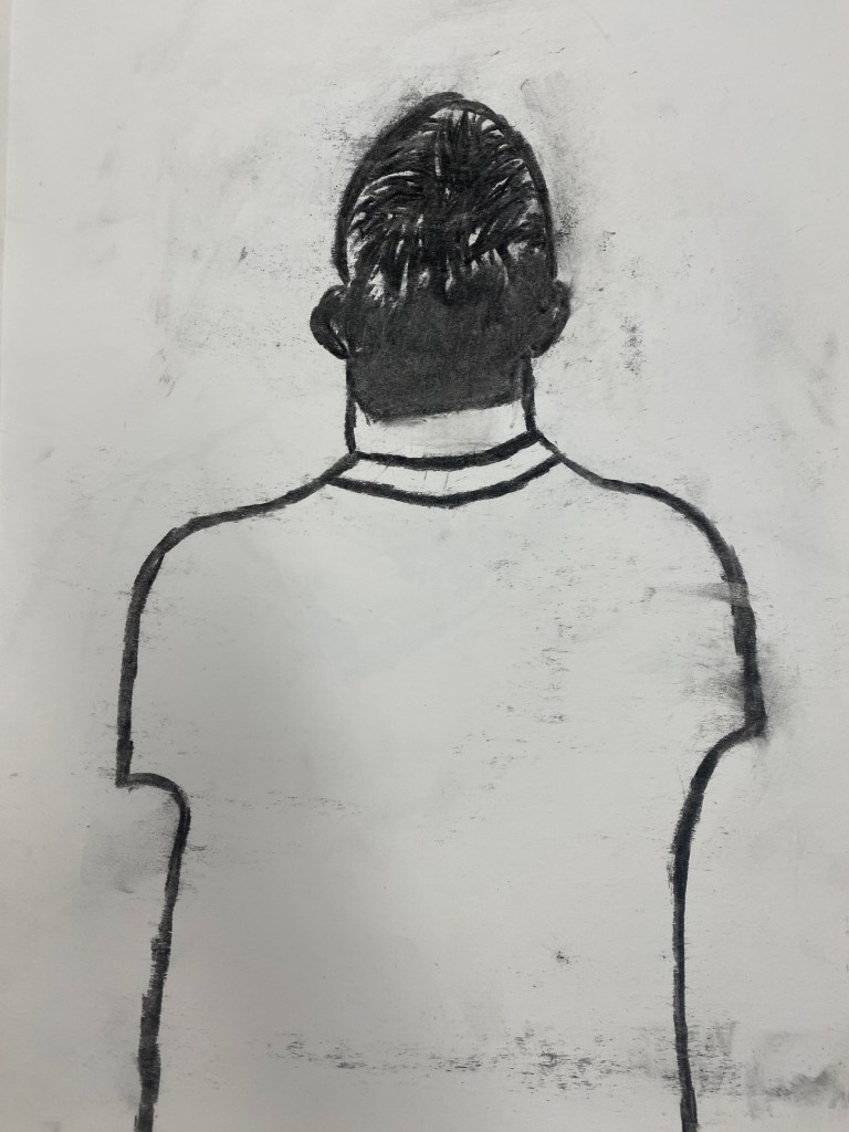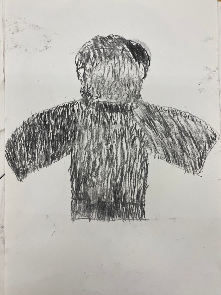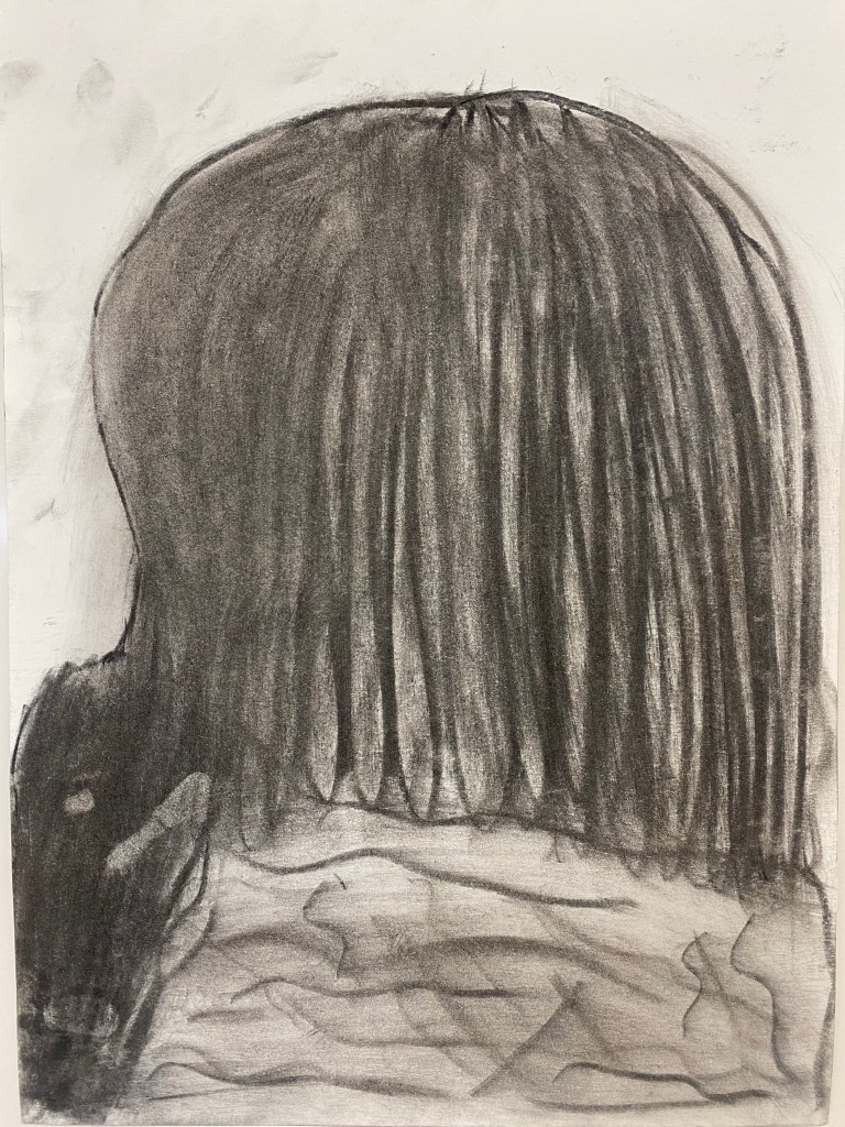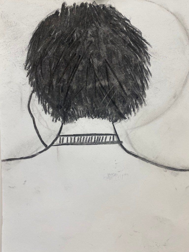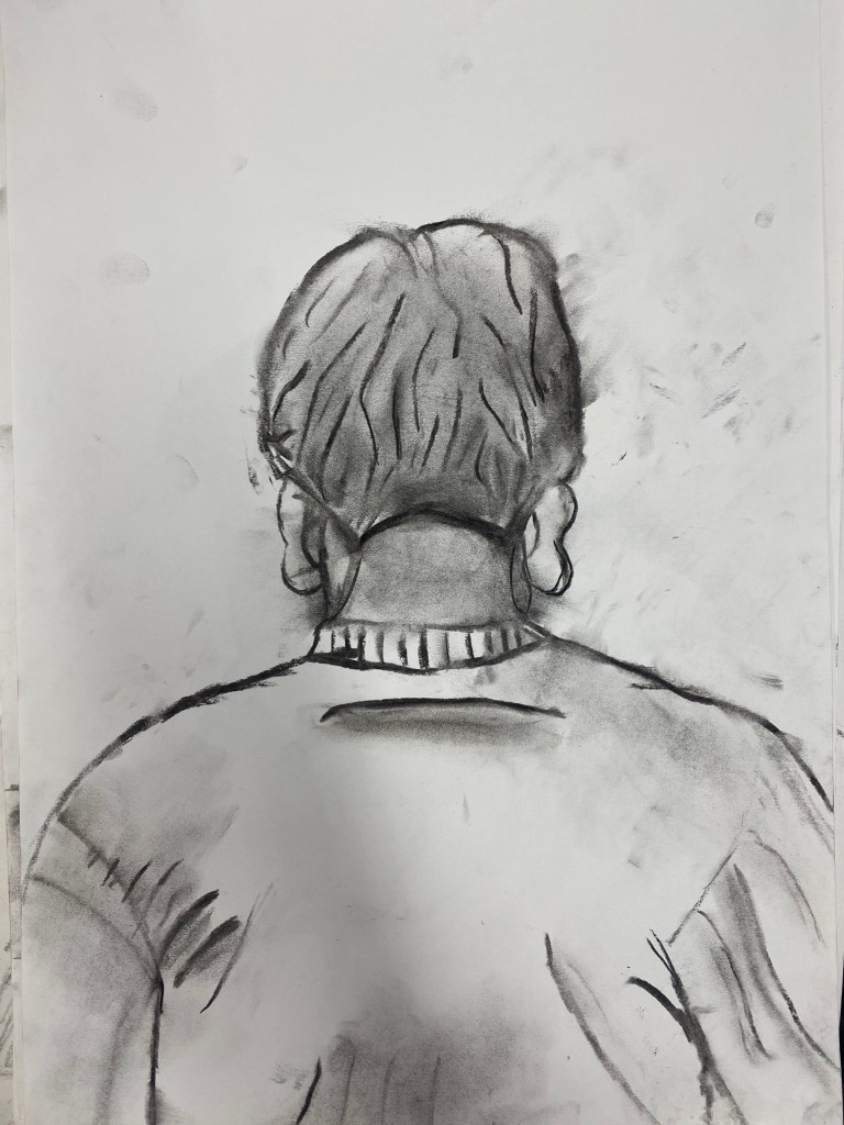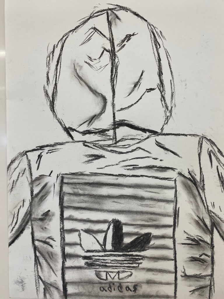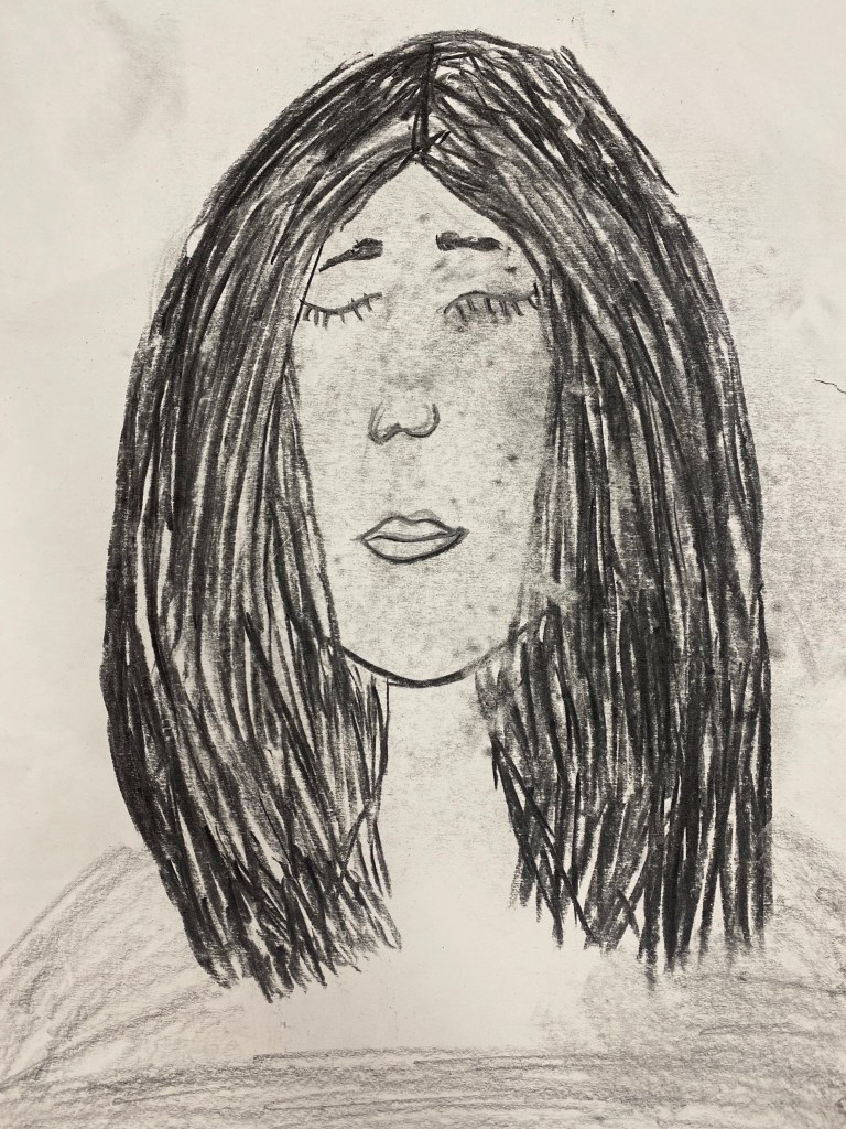 Charcoal and graphite portraits by Belmont HS students, 18 x 12″