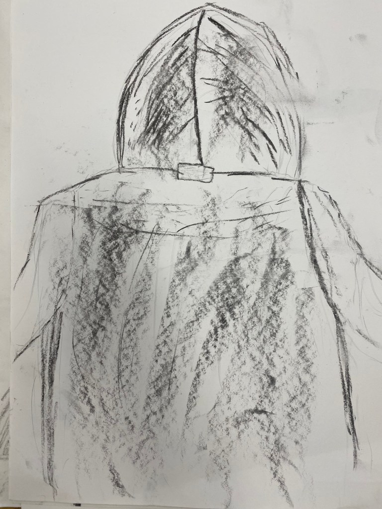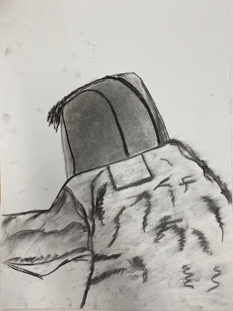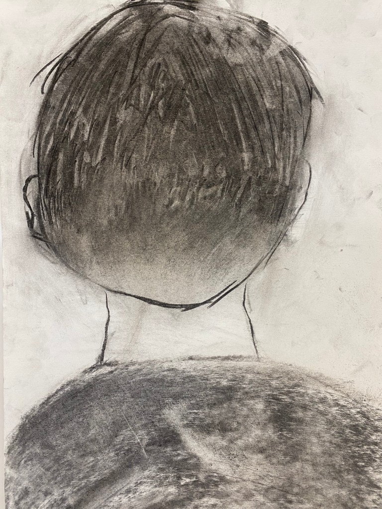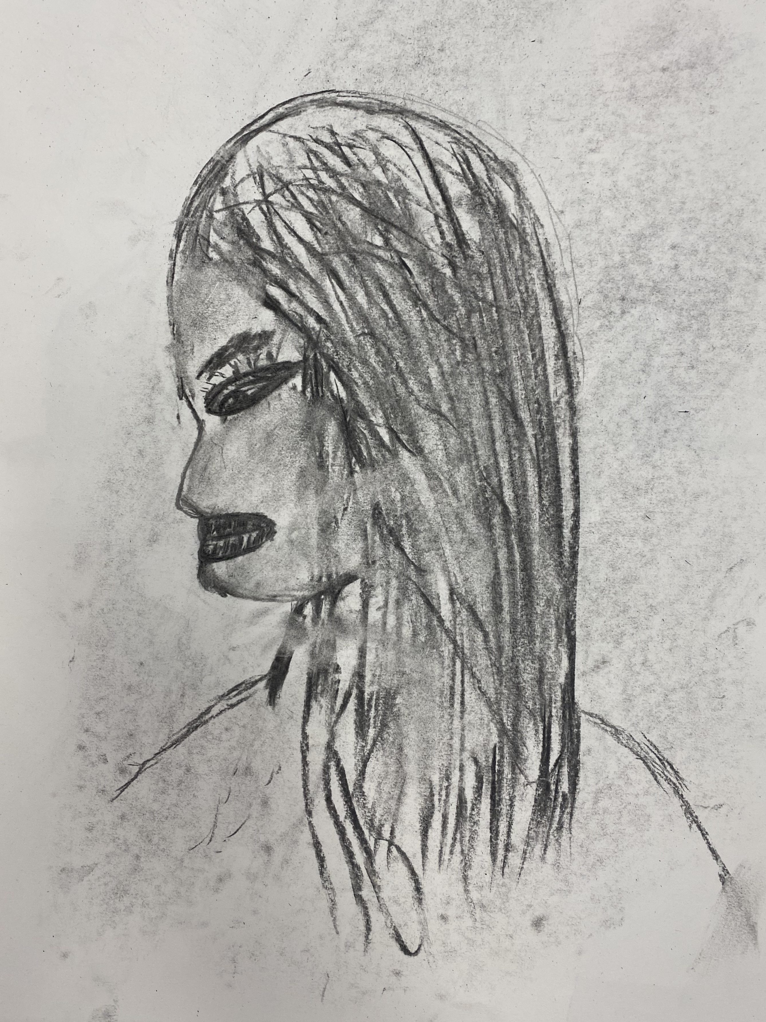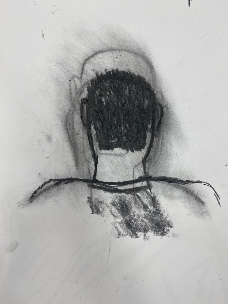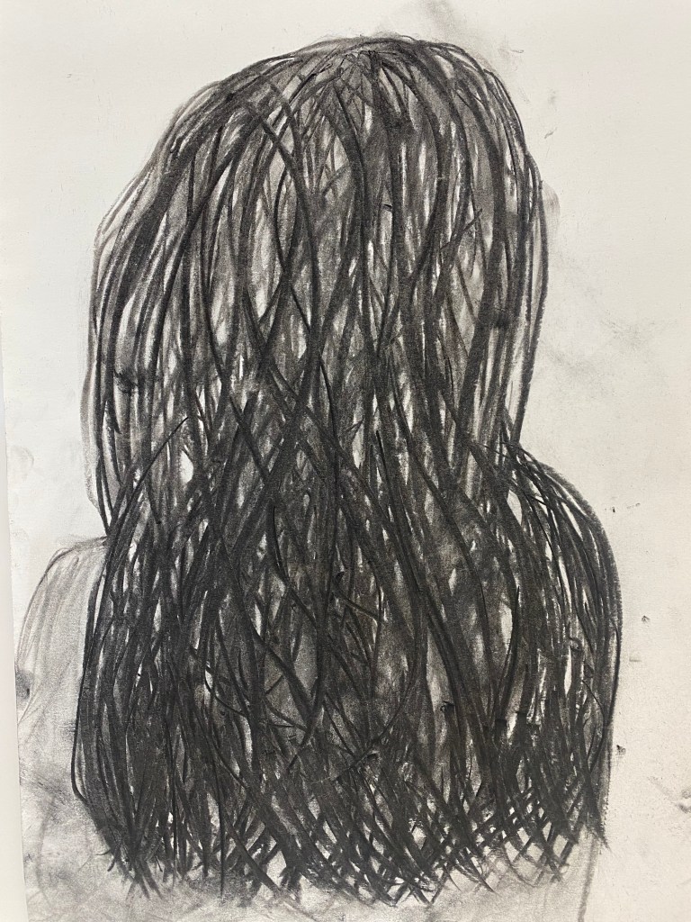 Charcoal and graphite portraits by Belmont HS students, 18 x 12″
