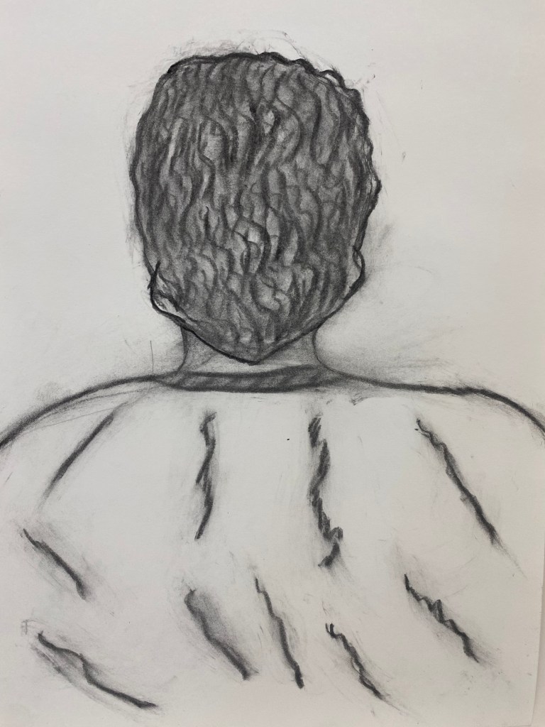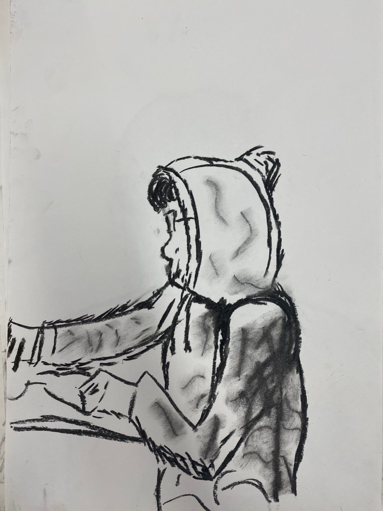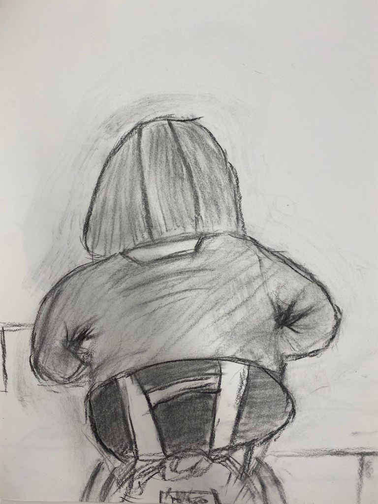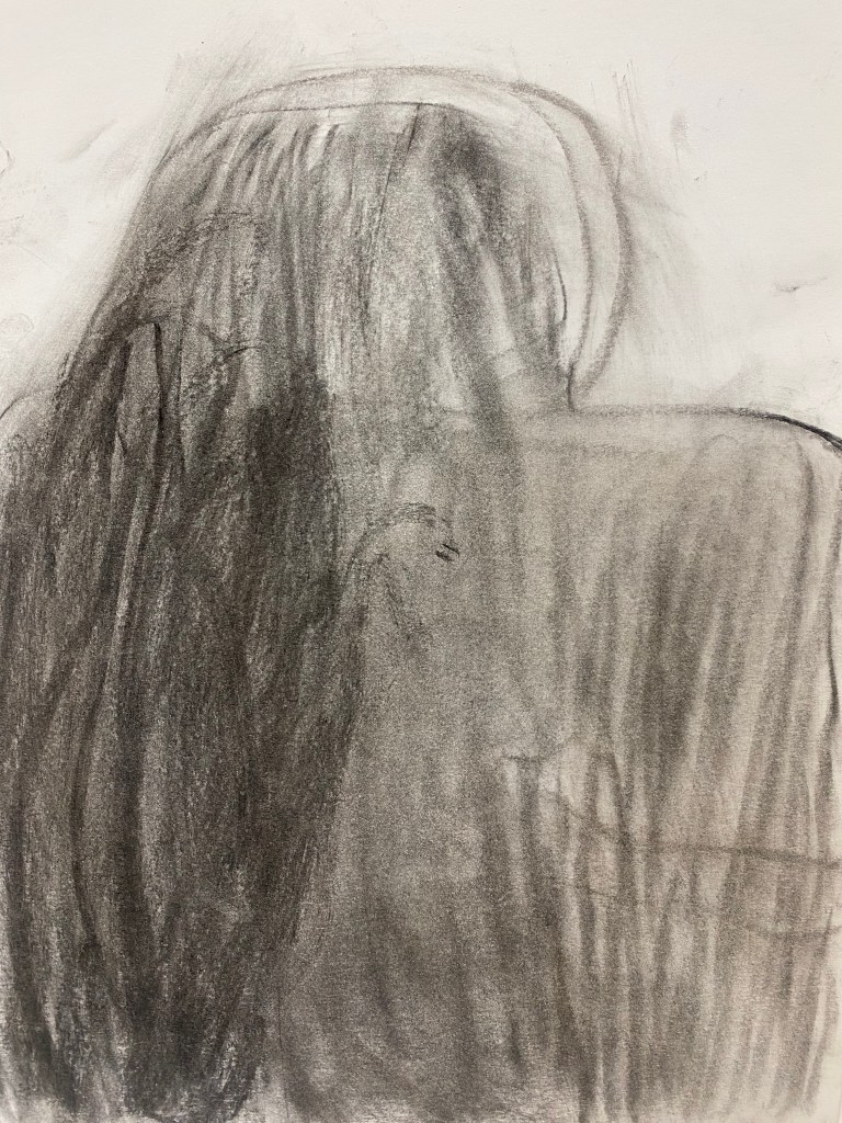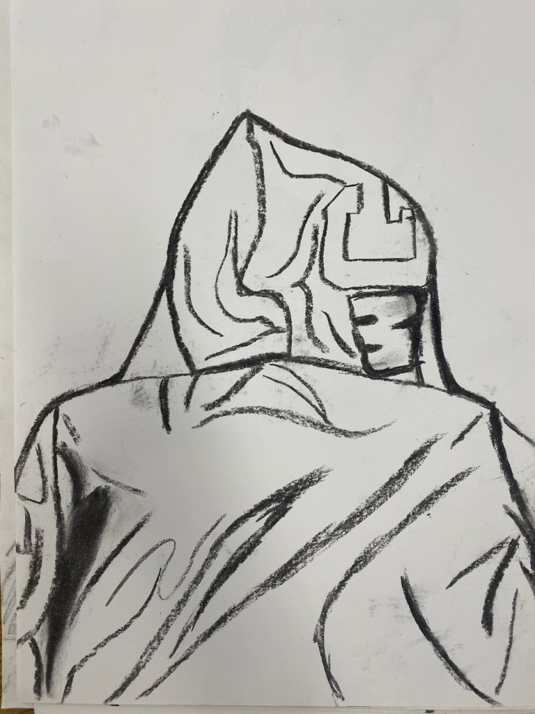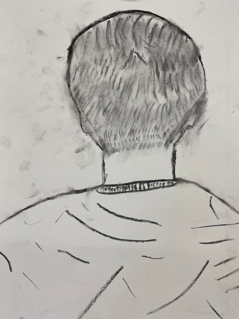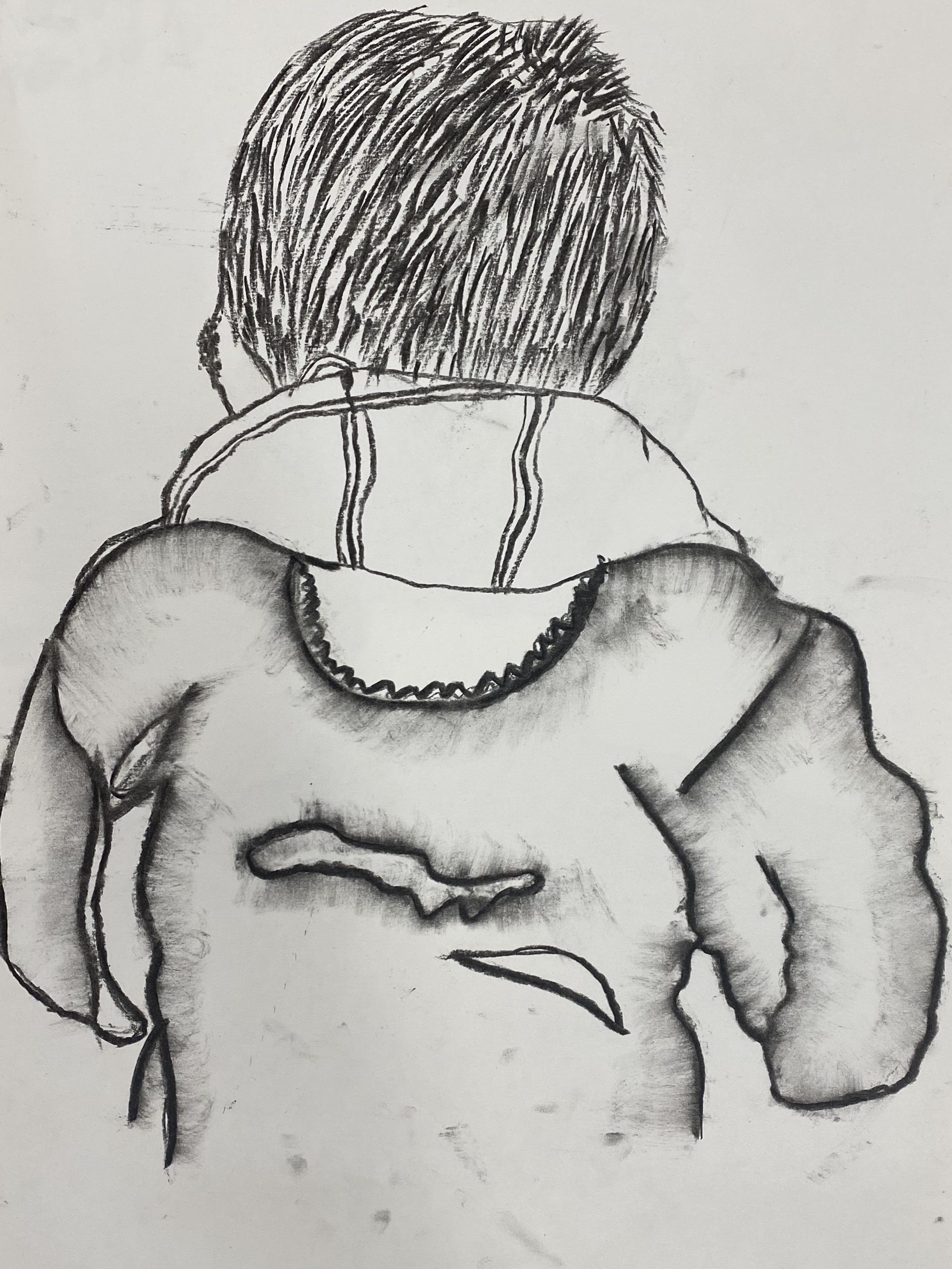 Charcoal and graphite portraits by Belmont HS students, 18 x 12″