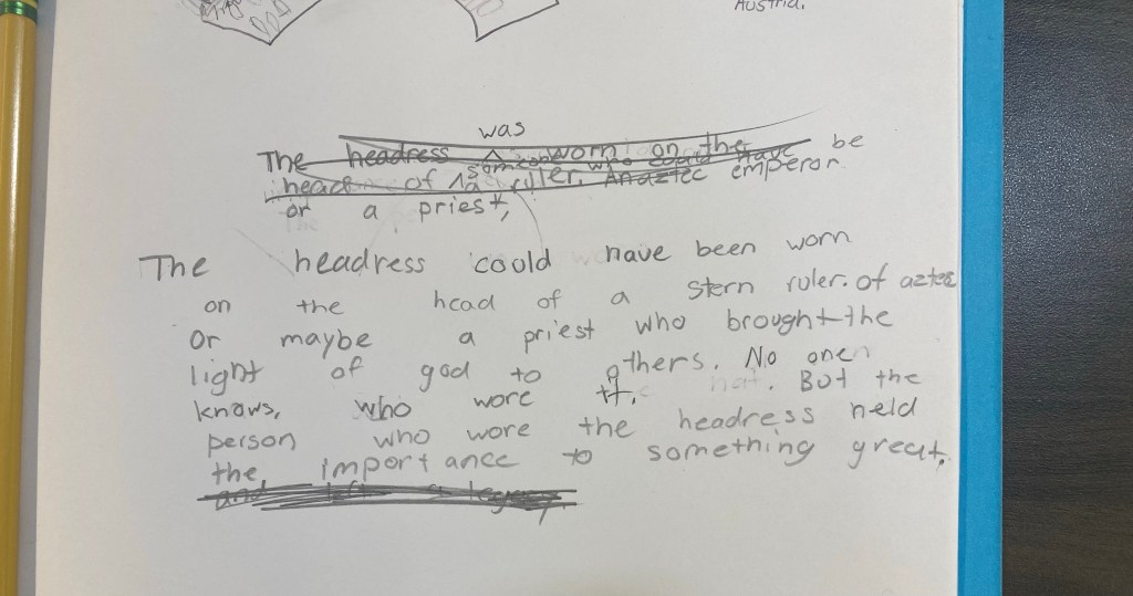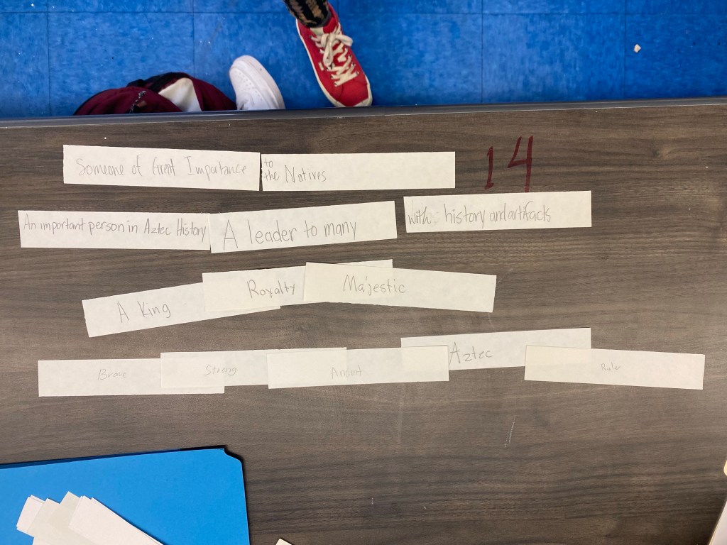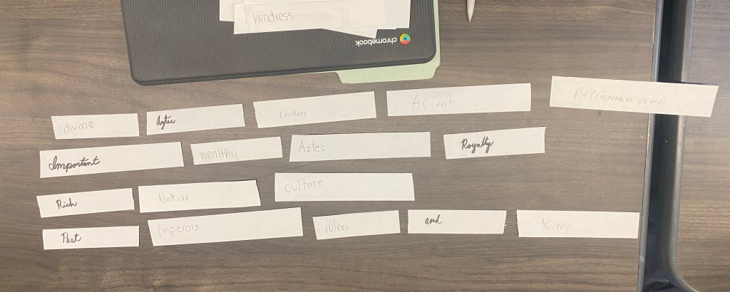 Collaborative Poems September 7, 2023 • nicolerosegelormino Art History at Hollywood High wrote collaborative poems about the headdress worn by Aztec Emperor Moctezuma II. Share this: Share on X (Opens in new window) X Share on Facebook (Opens in new window) Facebook More Share on Pinterest (Opens in new window) Pinterest Email a link to a friend (Opens in new window) Email Like Loading... Related